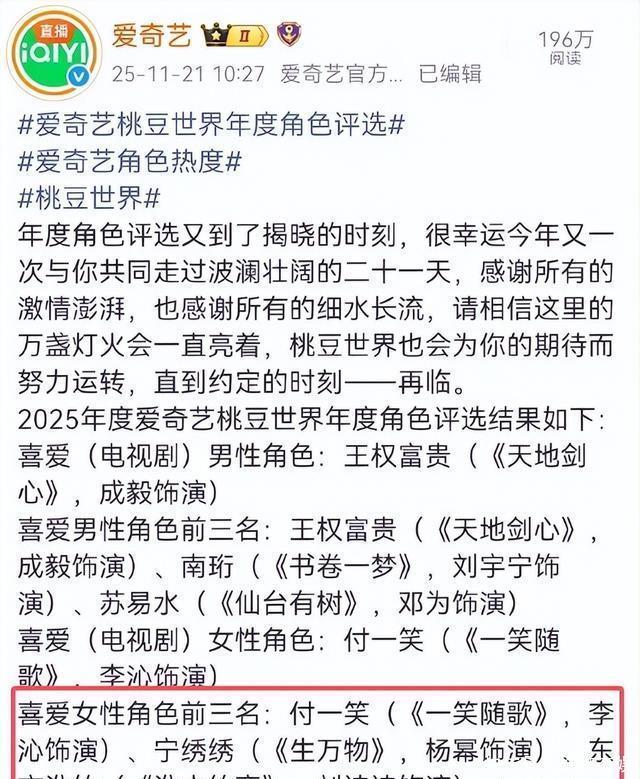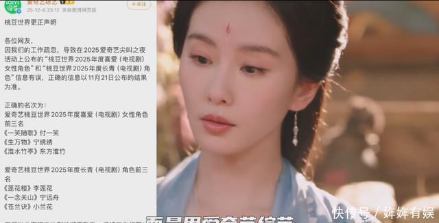 这一“张冠李戴”,不仅让辛苦打投的粉丝寒心,更将平台对合作演员、对观众基本尊重和活动专业性的漠视暴露无遗。 更令人匪夷所思的是,事后补救并非通过官方主账号郑重致歉,而是在“爱奇艺综艺”账号上轻描淡写地发布。
