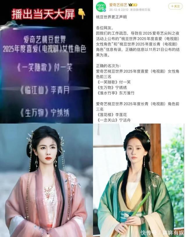 然而在颁奖现场,这一奖项却被错误地颁给了白鹿在《宁安如梦》中饰演的“李清月”。